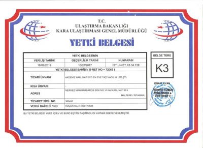 İstanbul Akdeniz Nakliyat Yekti belgeleri açısından tam tekmil ve hiçbir eksiği bulunmadan çalışmaktadır. Belgelerimiz; Marka tescil belgesi, K3taşıt belgesi, K1 taşıt belgesi,İstanbul Ticaret Odası Sicil Tasdiknamesi, K1 Yetki Belgesi, K3 Yetki Belgesi, Mesleki Yeterlilik Belgesi, T.C. İstanbul ticaret sicil tasdiknamesidir.Bu belgeler sahip bir nakliye şirketi ile çalışmak her zaman müşteri açısında güven duygusunu tazeler.